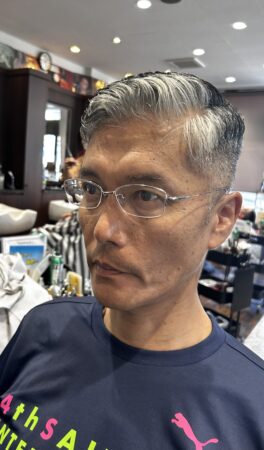 周りを0.5~3mmで刈り上げてトップは前髪を流して上げられるように長さを決めています!