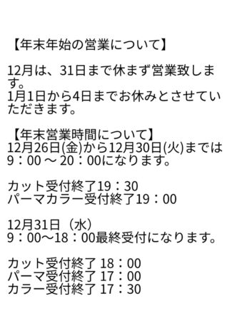 本日は年末年始の営業についてのお知らせです