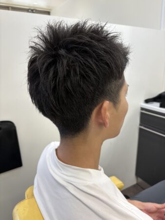 フロントは上げやすいように短めでトップはワックスで動きが出やすいようにしてあります♪
