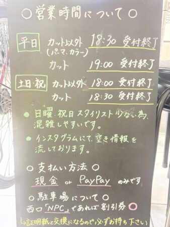お間違えのないように受付時間前までにご来店ください🙇♀️