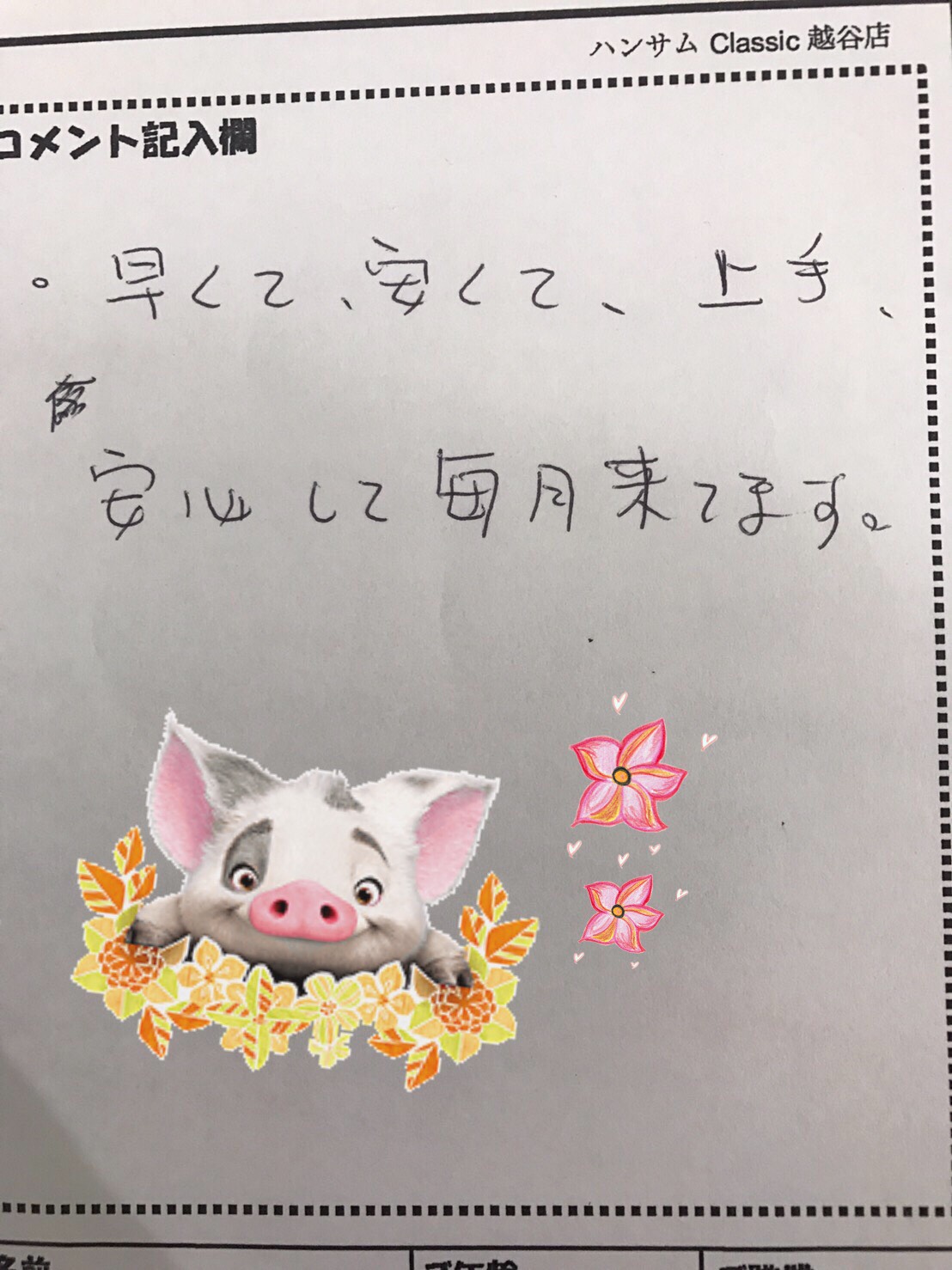 ハンサムClassic 越谷店へのお客様の声