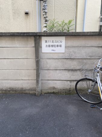 以下の看板あるスペースは、停められます。お間違い無いよう お願い致します。