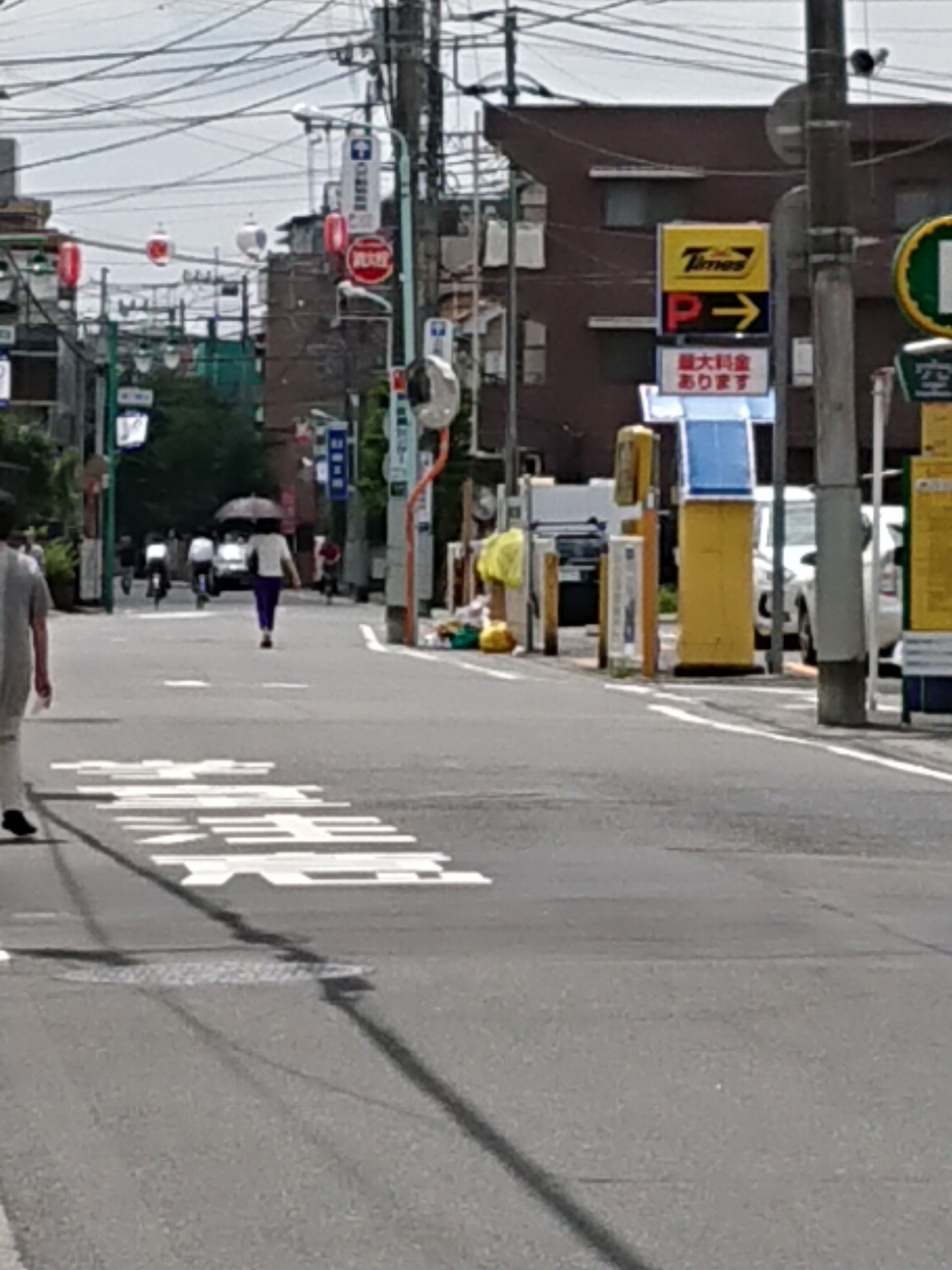 画像にある駅から向かっての駐車場です。黄色い看板Timesがあり、その奥にゴミ収集が、見えます!Timesとゴミ収集の間が入り口になっております。14番~18番が当店の駐車場になっています。