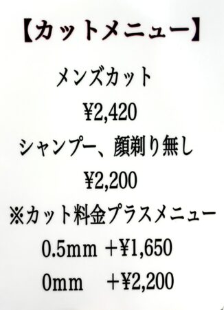 シャンプー、お顔剃りのどちらかをご利用の場合、カットのみをご希望の場合¥2,200でのご案内になります。
