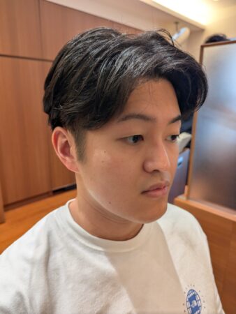 今回のお客様もサイドやバックをすっきり整え、トップに自然な動きをプラス。ワックスを少量馴染ませるだけで、上品で清潔感のある仕上がりになりました。