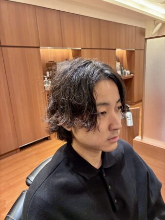 センターパートは直毛だとペタッとしやすいですが、パーマが残っていることで分け目が自然になり、根元が立ち上がりやすく、セットしなくても形になりやすいのが特徴です。