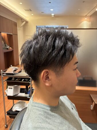 サイドと襟足はスッキリと刈り上げ、