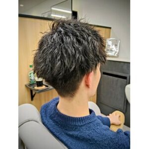 今回のカットは、サイドと襟足をスッキリさせてシルエットを整え、トップはパーマの動きが出る長さを残して調整。
