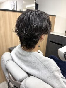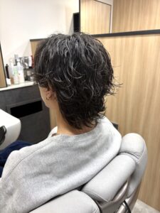 重く見えやすい長めのスタイルでも、パーマでラフな動きをつけることで軽さと抜け感をプラス。無造作に見えてしっかりキマる、今っぽい質感が特徴です。