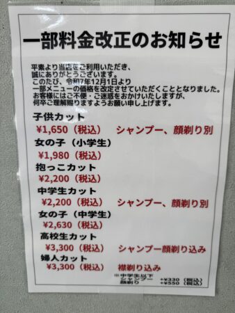 この度、令和7年12月1日より一部料金改定をさせていただくことになりました。