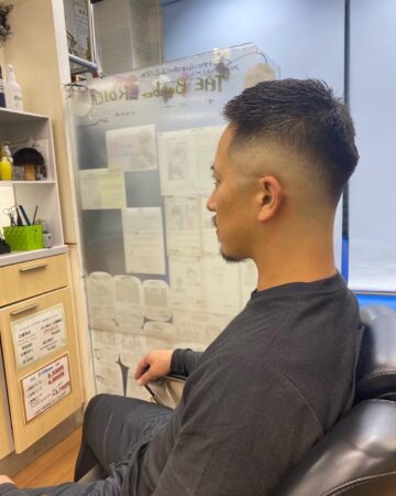 周りはスキンフェード。ゼロミリからグラデーションをかけた、ベリーショートスタイル。