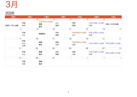 3月 スタッフ休日スケジュール