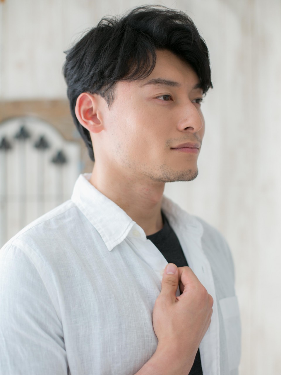 ニュアンスパーマでやわらかな動きをつけ、好感度バッチリの優し気なジェントルマンスタイルに。ビジカジに最適。トップにボリュームを持たせてスタイルUP効果も◎