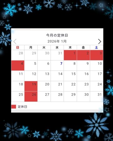 1月の定休日🟥のお知らせです。